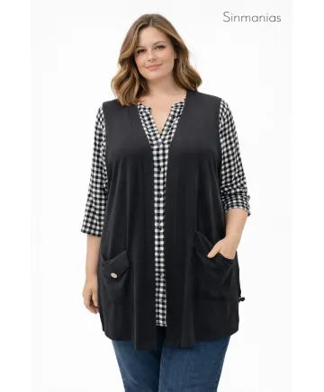 Chaleco de punto, con bolsillos y decoración con botón, aberturas laterales.